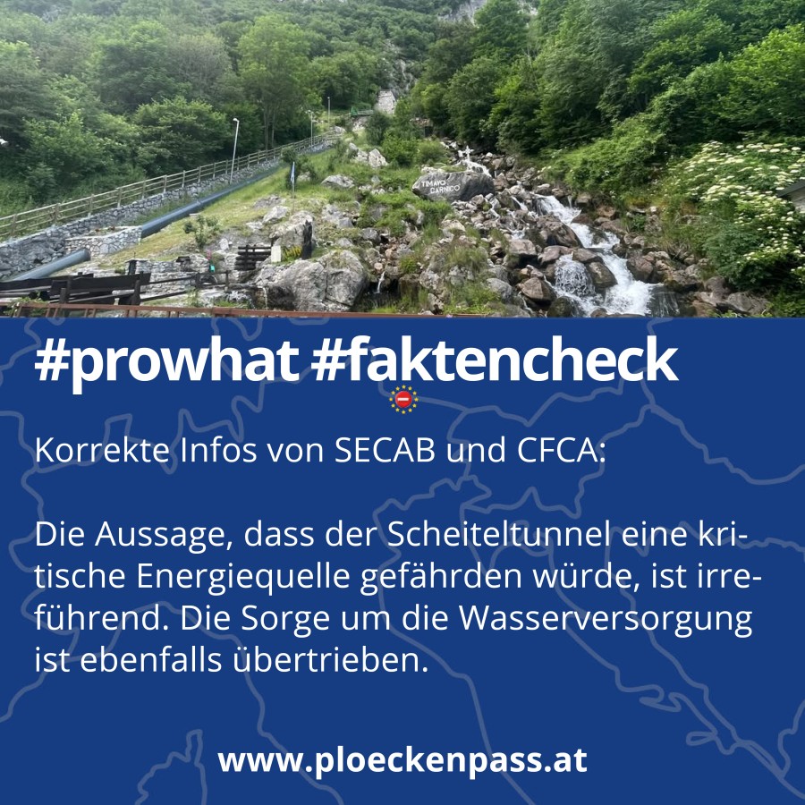 Die Aussage, dass der Scheiteltunnel am Plöckenpass eine kritische Energiequelle gefährden wurde, ist irrefuhrend. Die gesamte Energieproduktion der SECAB aus dem Wasserkraftwerk Fontanone beträgt nur 6,8 % der Gesamtproduktion des Unternehmens. Im Jahr 2024 erwirtschaftete die SECAB einen Überschuss von 28 %, selbst nachdem die gesamte lokale Kundschaft im oberen But-Tal versorgt worden war. Aufgrund dieses Überschusses wurde die gesamte Produktion des Wasserkraftwerks Fontanone im Jahr 2023 und 2024 an Dritte (AEG in Ivrea) verkauft und nicht direkt an die lokale Gemeinschaft geliefert.